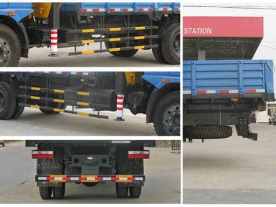 | 整車說明: | 該車上裝選裝折臂式吊機(jī);吊機(jī)型號(hào),質(zhì)量,最大起升載荷,整車高度,整備質(zhì)量,載質(zhì)量分別對(duì)應(yīng)為SQ4S:1220Kg/4000Kg/3250mm/5005Kg/4200Kg;SQ4Z:1250Kg,4000Kg/3100mm/5035Kg/4170Kg。隨底盤選裝駕駛室。防護(hù)材料:Q235A碳鋼,連接方式:左右側(cè)面及后下部防護(hù)均采用焊接連接,后部防護(hù)斷面尺寸(mm):100×50,后部防護(hù)離地高度(mm):520。 | ||