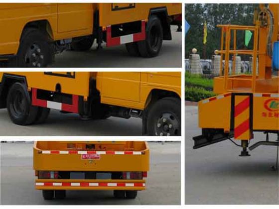 | 整車說明: | 該車吊臂前伸為900mm,作業(yè)高度為14米。選裝二節(jié)工作臂時(shí),作業(yè)高度為12米; 選裝三節(jié)工作臂時(shí),作業(yè)高度為16米;防護(hù)材料:Q235A碳鋼,連接方式:左右側(cè)面及后下部防護(hù)均采用焊接連接,后部防護(hù)斷面尺寸(mm):150×50,后部防護(hù)離地高度(mm):400。 | ||