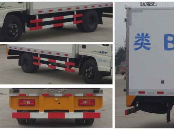 | 整車說明: | 車廂頂部封閉不可開啟。隨底盤選裝駕駛室。防護材料:Q235A碳鋼,連接方式:左右側面均與箱體底面采用焊接連接, 后部防護與車架采用焊接連接,后防護斷面尺寸(mm):50×110,后部防護離地高度(mm):395。 | ||