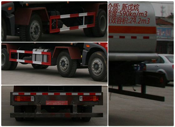 | 整車說明: | 罐體有效容積:20.3立方米,介質(zhì): 庚烷,汽油,類項號:3,密度:700千克/立方米.罐體外形尺寸長7910毫米,長軸2360毫米,短軸1630毫米.隨底盤選裝駕駛室及出口箱.側(cè)、后防護裝置材料材質(zhì):Q235B,側(cè)、后防護均用螺栓連接,后部防護裝置斷面尺寸(寬×高)60×100(mm),后部防護離地高度:540mm.安裝具有衛(wèi)星定位功能的行駛記錄儀,安裝前輪盤式制動器,僅采用底盤子午線輪胎.ABS生產(chǎn)廠家:上海萬捷汽車控制系統(tǒng)有限公司,ABS型號: VIE ABS-II.油耗值39.4,38.7,39.3,39.5,40.3分別對應發(fā)動機CA6DF4-24E4,CA6DF4-22E4,BF6M1013-24E4, BF6M1013-26E4,CA6DL1-26E4. | ||