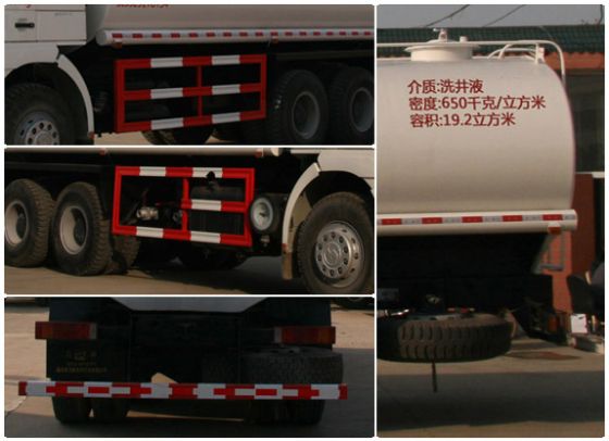| 整車說明: | 罐體有效容積:19.2立方米,介質(zhì):洗井液,密度:650千克/立方米,罐體尺寸:長7400毫米,長軸2250毫米,短軸1540毫米.側(cè)、后防護(hù)裝置材料材質(zhì):Q235B,側(cè)防護(hù)用螺栓連接,后防護(hù)用螺栓連接,后部防護(hù)裝置斷面尺寸(寬×高)60×100(mm),后部防護(hù)離地高度:540mm.選裝尾部帶液位計(jì).ABS系統(tǒng)生產(chǎn)廠家:西安正昌電子有限責(zé)任公司,廣州市科密汽車制動(dòng)技術(shù)開發(fā)有限公司,浙江萬安科技股份有限公司.ABS系統(tǒng)對應(yīng)型號(hào):ZQFB-V,CM4XL-4S/4K,VIE ABS-Ⅱ. | ||